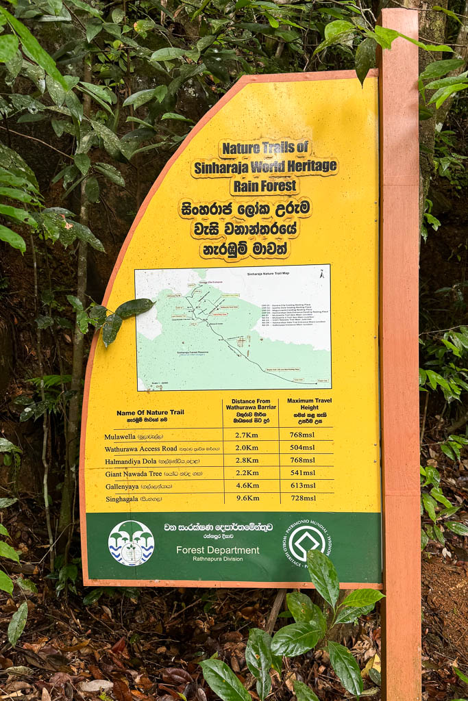 Du darfst die Wanderwege im Sinharaja Rainforest nur gemeinsam mit einem örtlichen Führer zu Fuß betreten. Es gibt mehrere Eingänge zum Sinharaja Nationalpark. Auf der Webseite birdingplaces findest du eine aktuelle und ausführliche Beschreibung für den nördlichen Eingang: Deine Eintrittskarte kannst du am Tor beim Forest Department kaufen, das von 6:30-18 Uhr geöffnet ist. Achtung: Der Ticketverkauf endet schon um 16:30 Uhr! Bei den Eintrittspreisen haben wir unterschiedliche Angaben zwischen 9-14 € pro Person gefunden. Die Kosten für den Führer sind darin aber schon enthalten. Dazu später mehr.