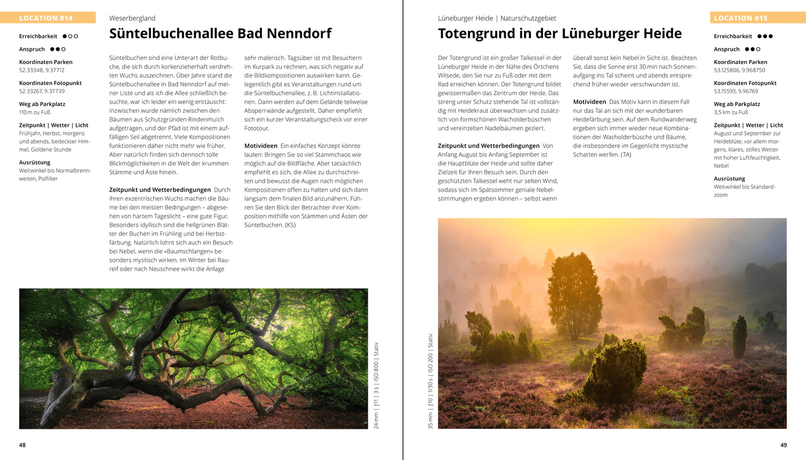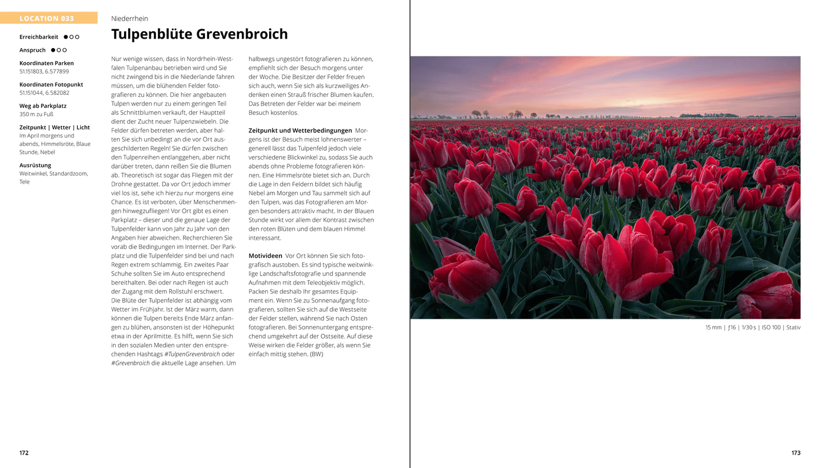 - Übersichtliches Doppel- und Einzelseitenlayout mit zahlreichen Originalfotografien sowie strukturierten Informationen zu Location, Motivideen, Ausrüstung und mehr.